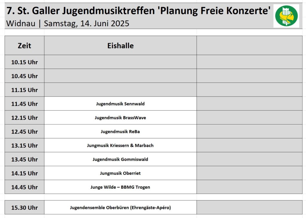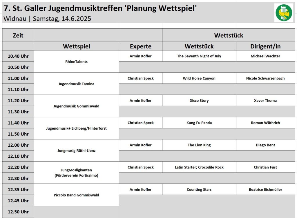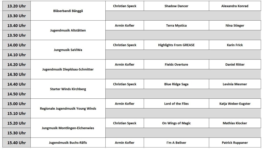 09:00 Uhr Eintreffen der Jugendmusiken auf dem Festareal
